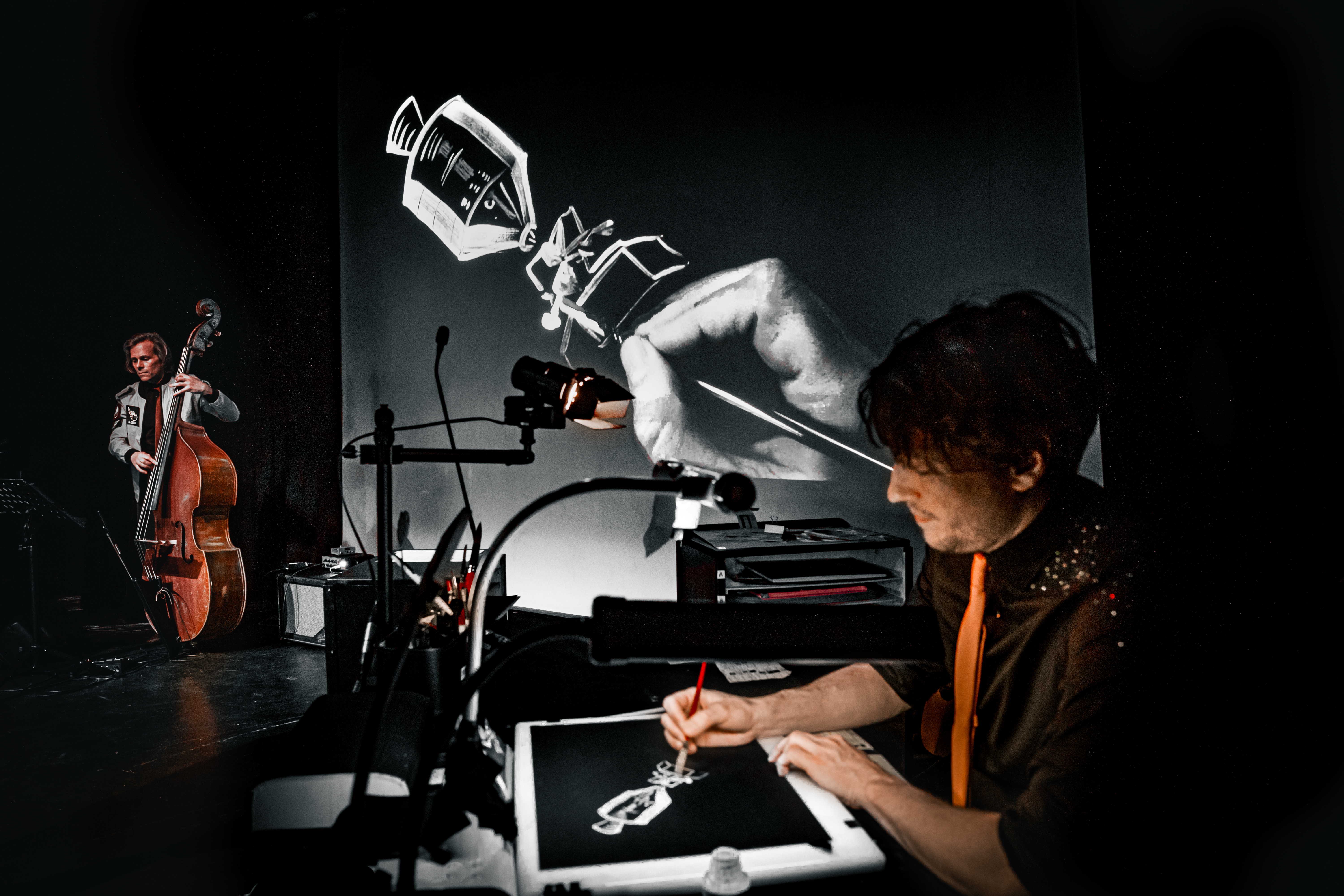 In einer einzigartigen Verbindung aus Live-Zeichnungen, Musik und Schauspiel entführt die Paper Show Company das Publikum auf eine poetische Reise ins All. Zeichner Robert Nippoldt erschafft live auf der Bühne mit Kamera, Papier, Animationen und Objekten faszinierende Bilderwelten, die großformatig projiziert werden und jeden Strich unmittelbar erlebbar machen.