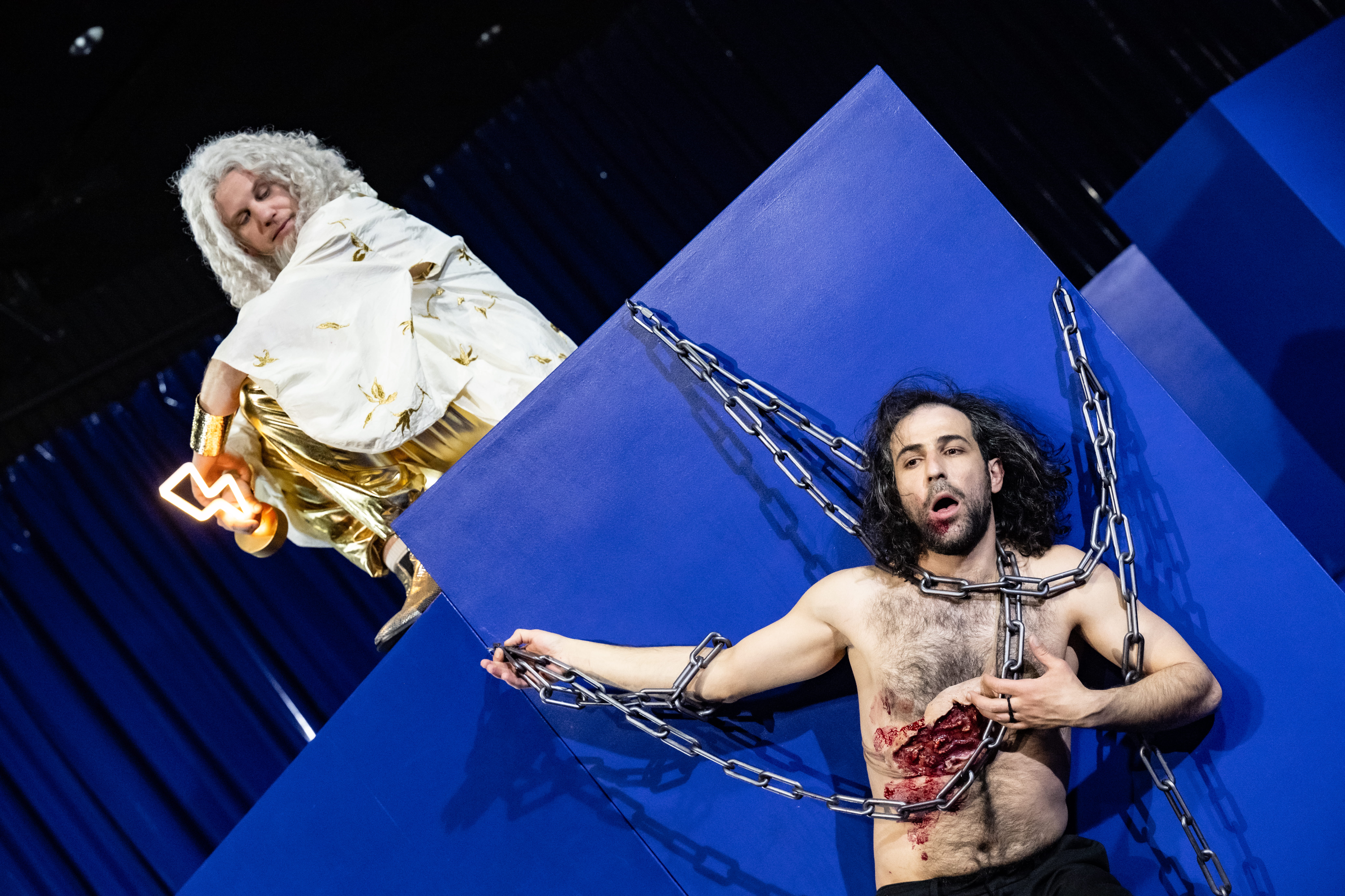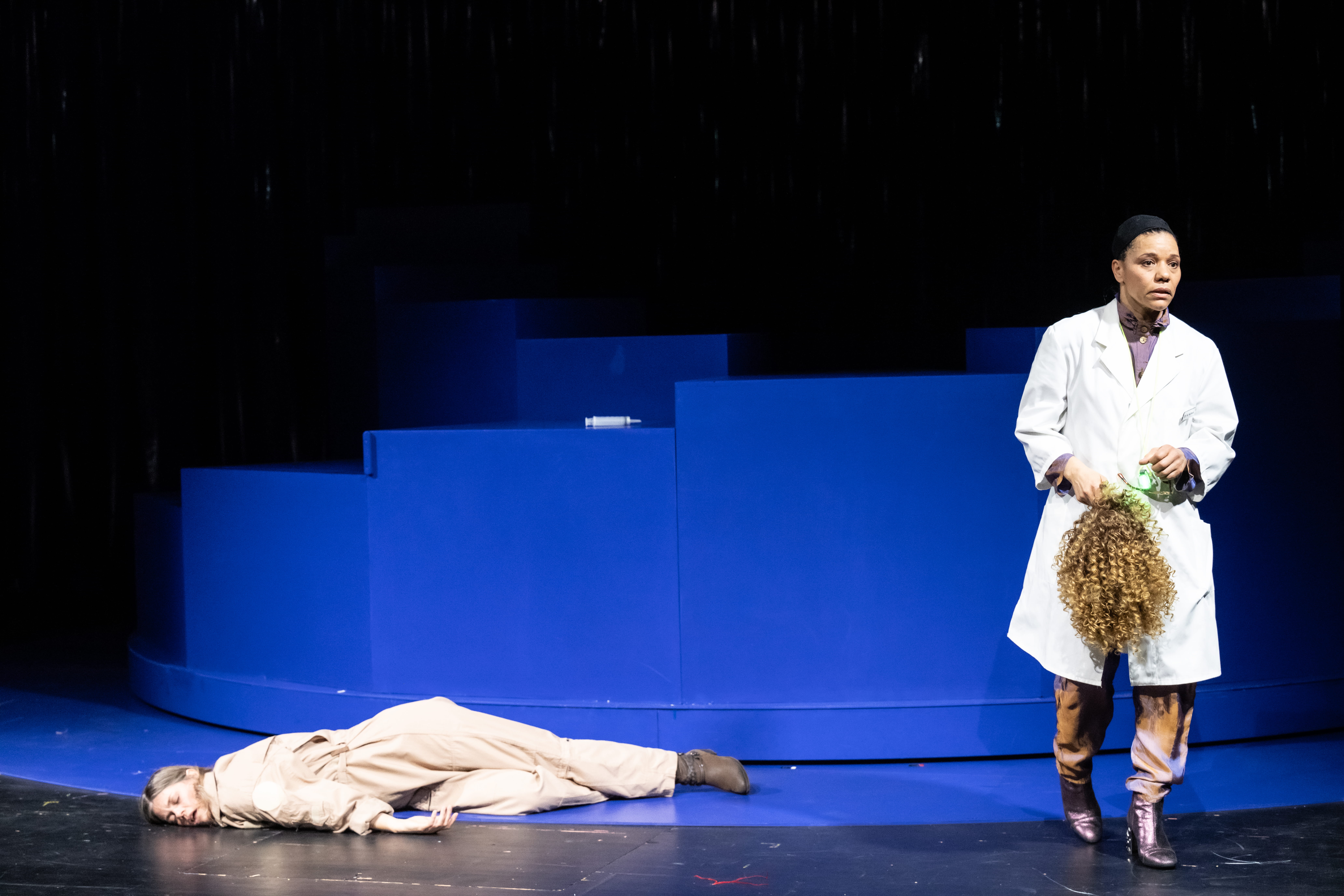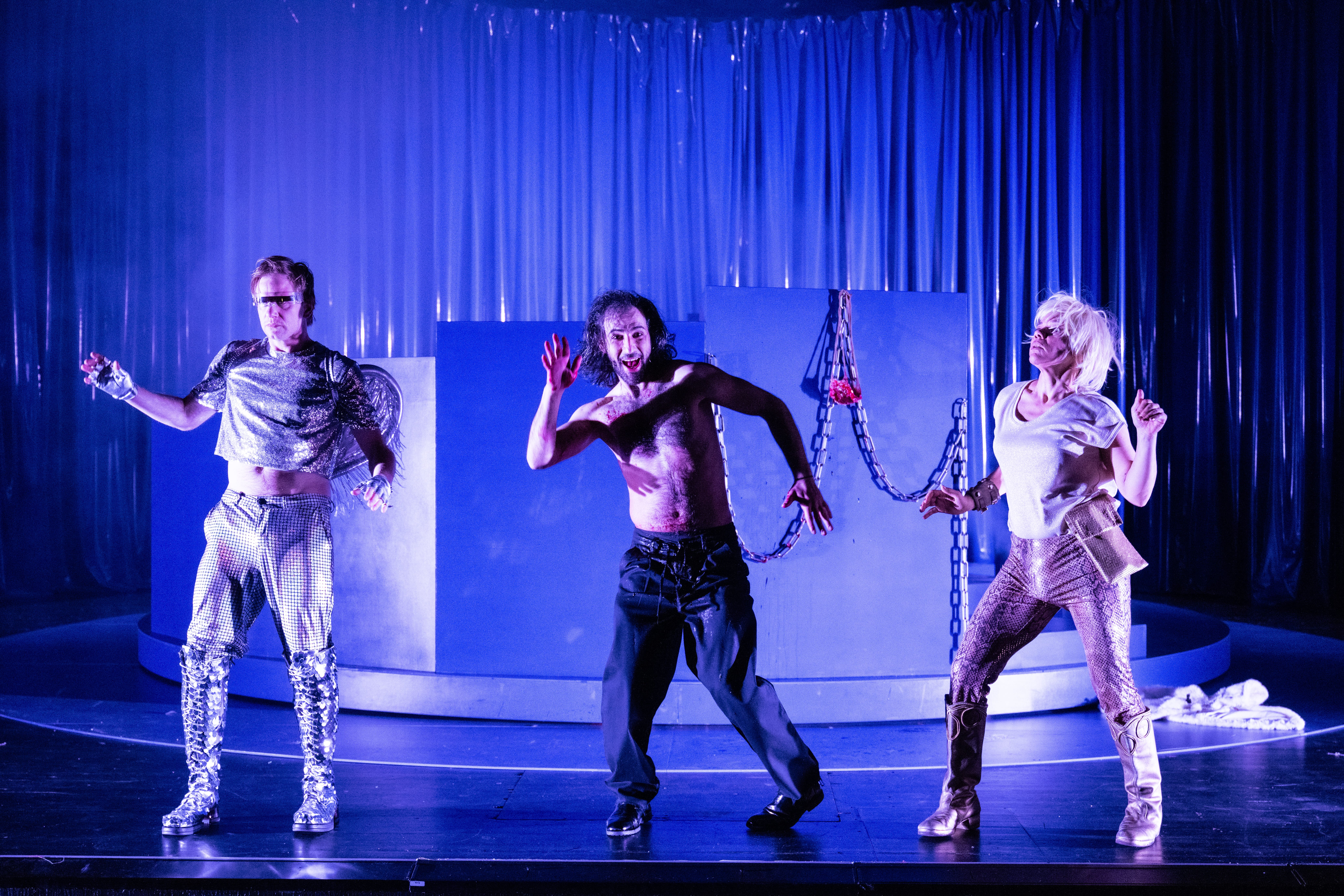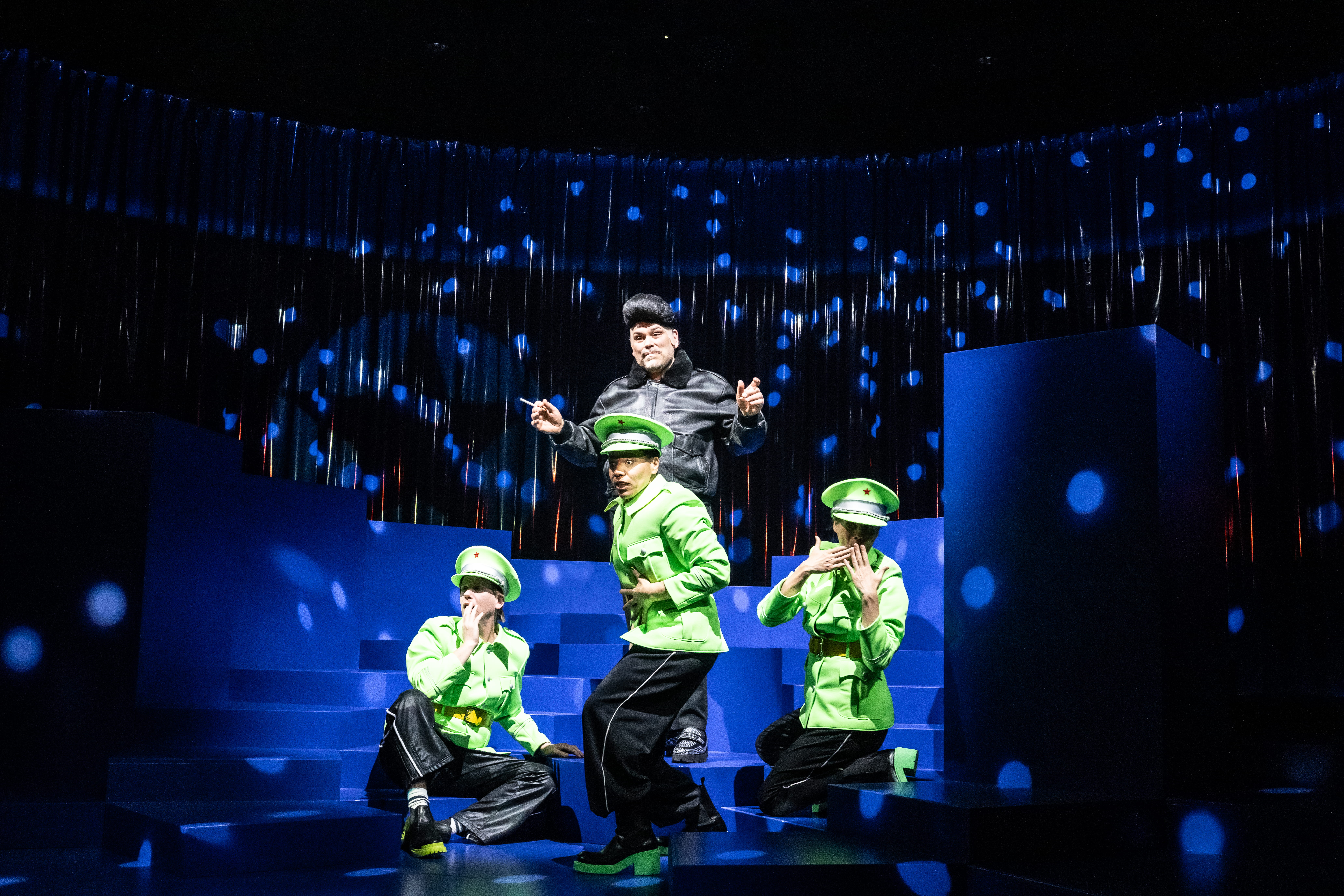 Die Inszenierung “Toxische Männer” findet für die Themen Diktatur, Gewalt, Faschismus und Misogynie verschiedene überspitze und teils satirische Darstellungsweisen.